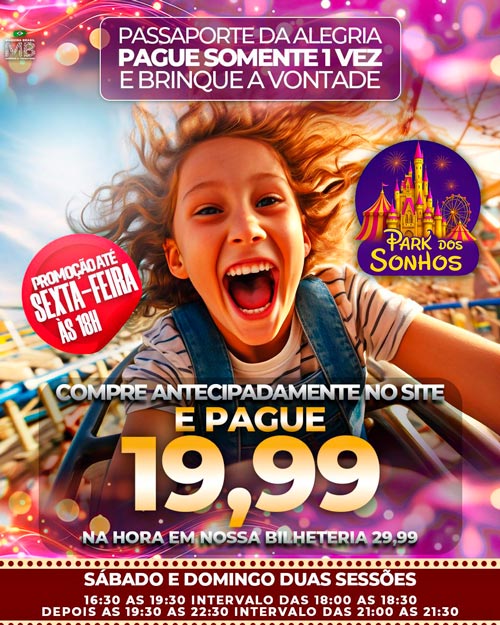 O Park dos Sonhos chegou para transformar seus dias em momentos inesquecíveis! Aqui, a diversão é garantida para todas as idades, com brinquedos emocionantes, personagens encantados e atrações que fazem brilhar os olhos de crianças e adultos.